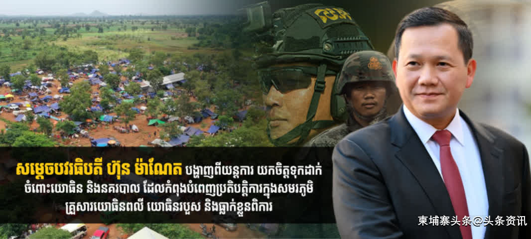 【柬埔寨头条综合报道】据柬媒消息,2025年7月29日晚,柬埔寨首相洪玛奈通过社交平台发布信息,公布柬埔寨政府为关怀在前线执行任务的军警人员、阵亡将士、伤残军人的家属及因战事受影响民众所制定的一系列支持机制。