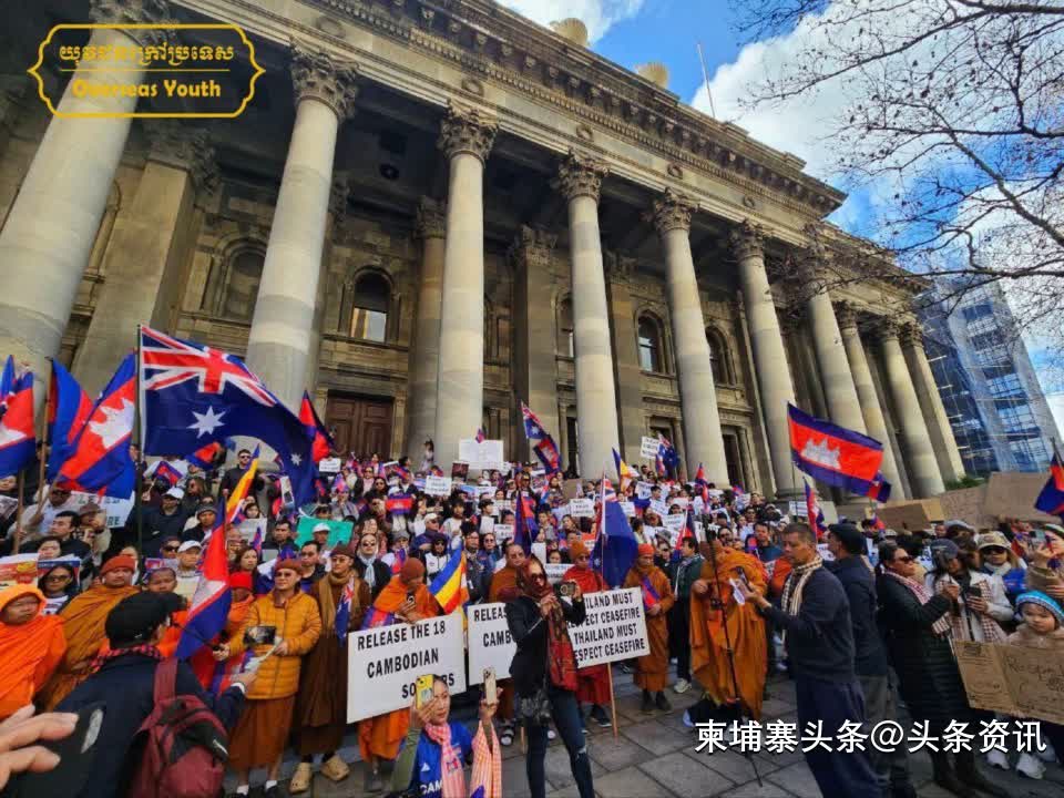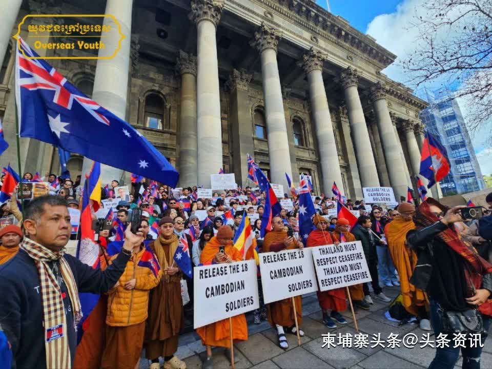 【柬埔寨头条综合报道】据柬媒消息,2025年8月17日,逾千名柬埔寨侨民及僧侣在澳大利亚南澳州阿德莱德市举行和平集会,抗议泰国违反柬泰停火协议,并要求立即无条件释放被扣押的柬埔寨士兵。