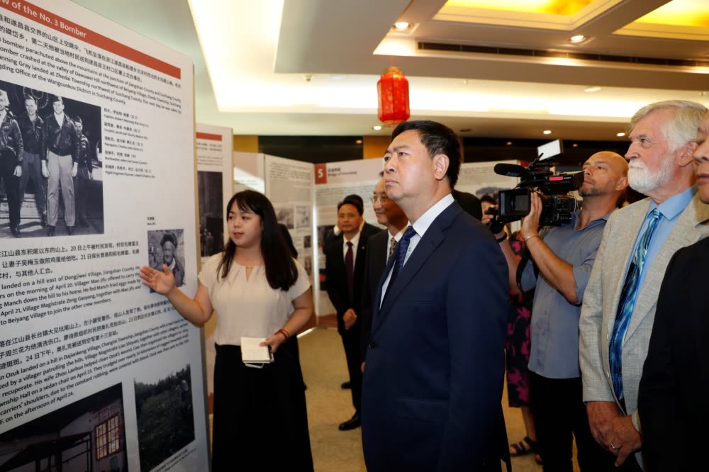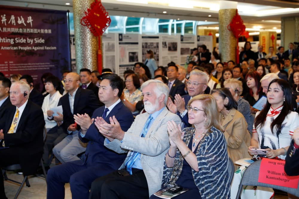 活动期间,陈立还与嘉宾一同参观“并肩战斗:中美两国人民共同抗击法西斯图片影像展”。展览精选300余幅珍贵史料图片,以时间为脉络全景呈现“南京大屠杀中的国际救援”“飞虎队援华作战”“驼峰航线运输”“杜立特行动大救援”等关键历史场景,生动诠释中美携手御敌的峥嵘岁月。多位嘉宾在参观后表示,80年光阴流转,当年的苦难与牺牲不容遗忘,子孙后代更应传承中美人民的传统友谊,续写两国民间友好新篇章。
