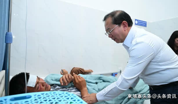 【柬埔寨头条综合报道】柬埔寨卫生部部长秦拉于9月18日前往安东医院,视察一名在泰国入侵行动中右眼严重受伤士兵的治疗情况。