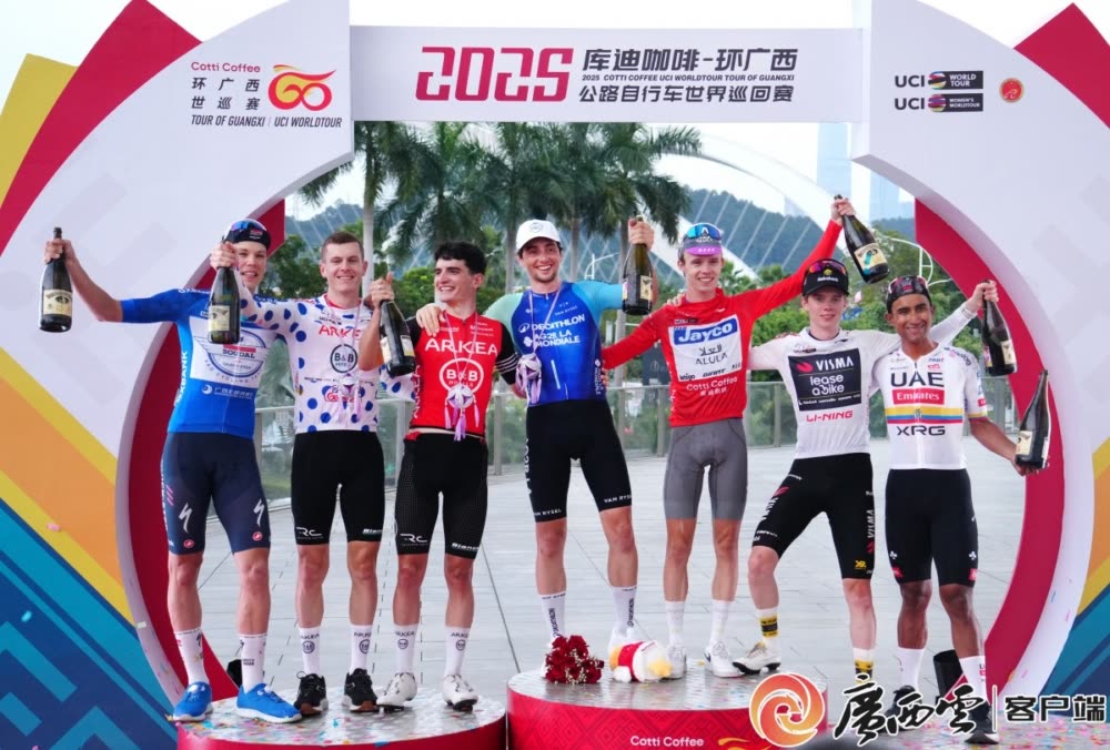 10月19日,2025环广西公路自行车世界巡回赛展开收官赛段的激烈争夺,此前已经连续拿下4个赛段冠军、来自快步车队的保罗·马尼耶在最后的大集团冲刺中拔得头筹,拿下他在今年环广西赛场上的第五胜,成功创造环广西胜场新纪录。杰科-埃尔奥拉车队的保罗·达博则问鼎总冠军。