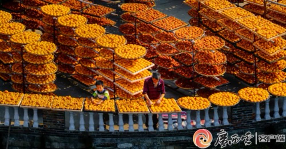 “林枫欲老柿将熟,秋在万山深处红。”当太阳行至黄经210度,天地间的清露凝为银霜,节气便从“寒露”悄然滑向“霜降”。霜降前后,中国广西平乐县的乡村便沉浸在丰收的欢腾里,那金红的柿饼在阳光下静静酝酿甜蜜,也把沉甸甸的喜悦与希望烙进每位农人的心田。