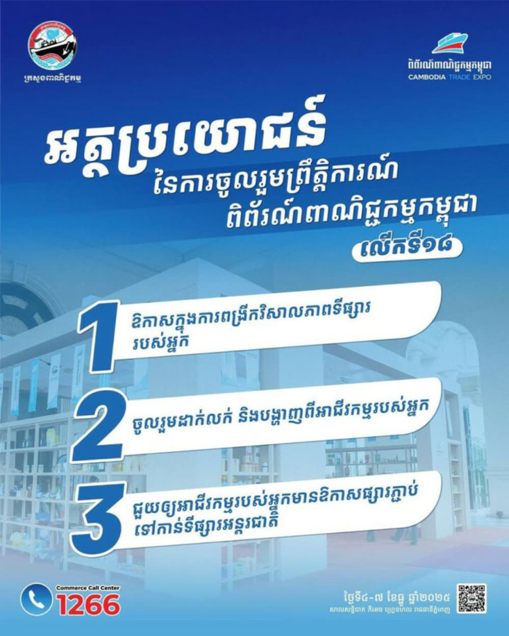 CTExpo致力于促进柬埔寨贸易发展、改善营商和投资环境,并推动本地与国际参展商、观众及合作方之间的进出口贸易往来。除了展示丰富多样的产品和服务外,该博览会也是加强柬埔寨与全球市场联系、彰显国际合作伙伴产品的重要平台。