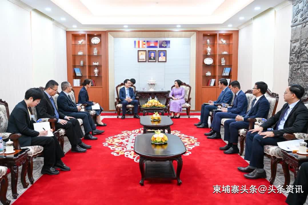 【柬埔寨头条综合报道】据柬媒消息,2025年12月9日,柬埔寨国家银行(NBC)行长谢丝蕾在国家银行大楼,接见了由行长陈晋祥率领的中国人民银行广西壮族自治区分行代表团,双方举行了礼节性拜会和工作会谈。