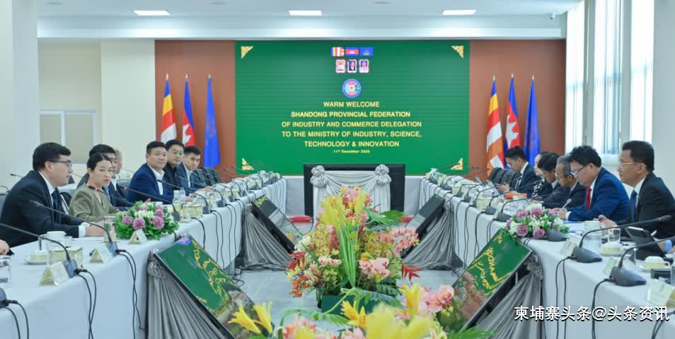 【柬埔寨头条综合报道】据柬媒消息,2025年12月11日,中国山东省工商业联合会代表团与柬埔寨工业、科学、技术和创新部部长韩万迪举行了工作会谈,双方就深化投资与技术合作进行了探讨。