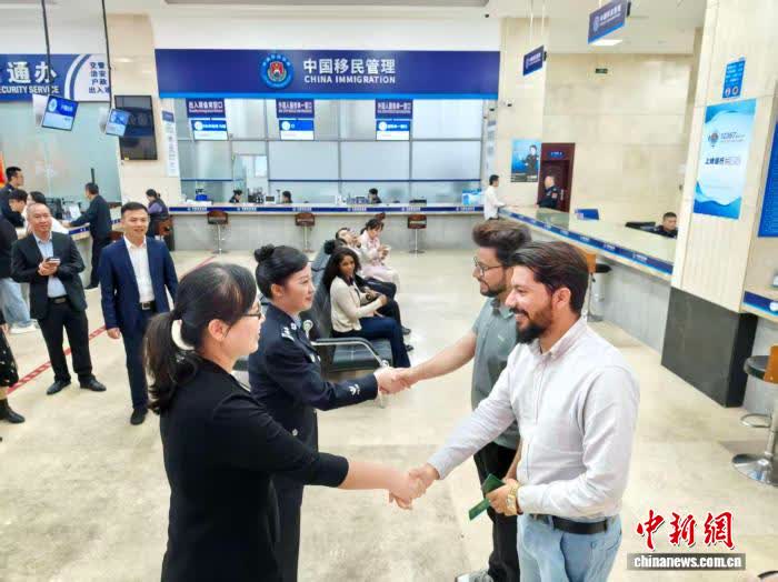 12月18日,海南全岛封关后第一批外籍人士在海南洋浦经济开发区领取了外国人来华居留许可。中新网记者 王子谦 摄