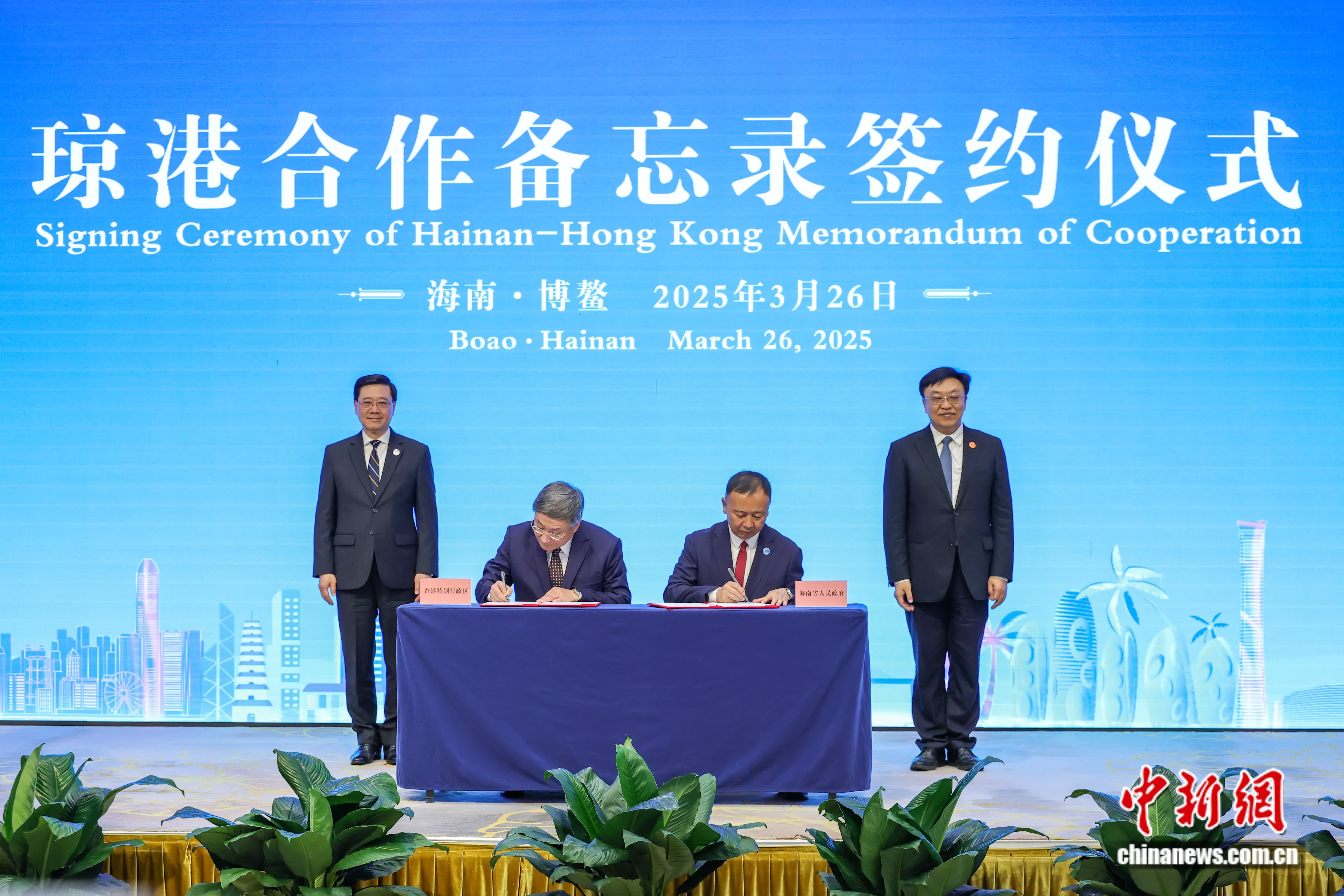 2025年3月26日,海南省政府与香港特别行政区政府在海南博鳌签署合作备忘录。中新社记者 骆云飞 摄