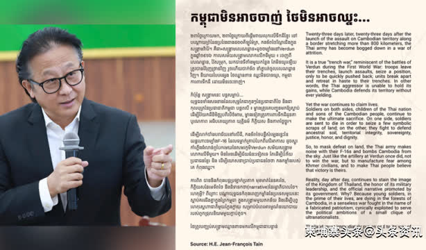 弗朗索瓦表示,柬埔寨不会输,泰国也是赢不了。这场对柬埔寨境内沿800多公里边境线发起的攻势持续23天后,泰国军队已深陷消耗战的泥沼。