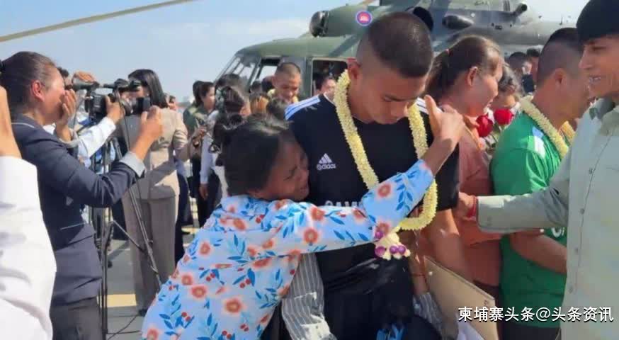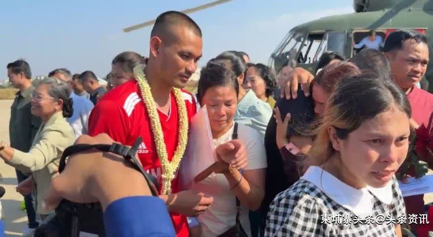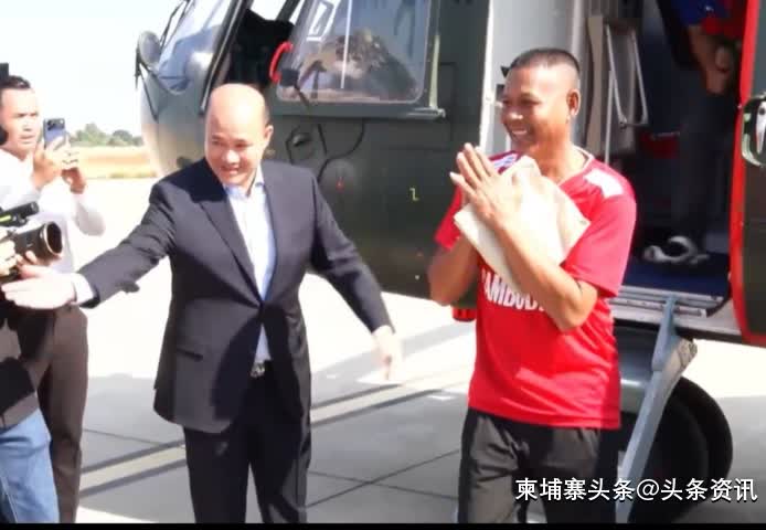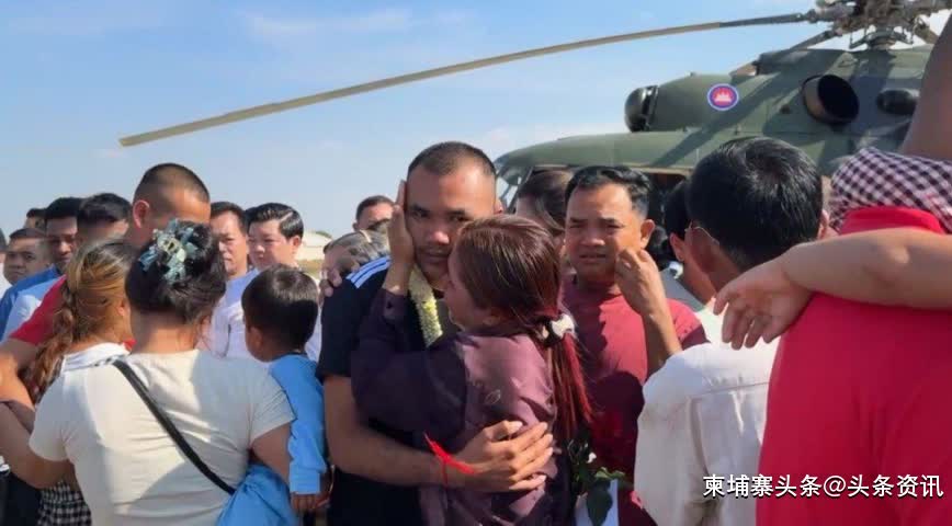 【柬埔寨头条综合报道】据柬媒消息,2025年12月31日下午,在被泰方扣押长达155天后获得释放的18名柬埔寨士兵,已搭乘军用直升机平安抵达首都金边波成东机场(旧机场)。