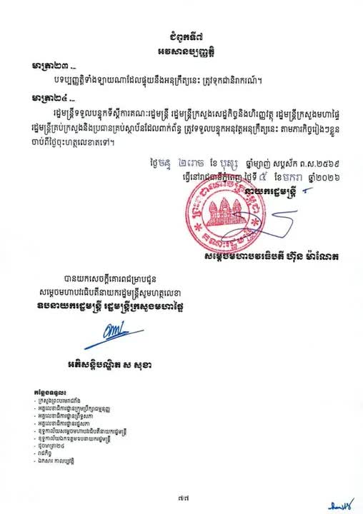 海外柬华投资公司(OCIC)特此发布公告,通知各位居民、租户、合作伙伴及物业管理单位:柬埔寨王国政府已正式颁布《集体住宅区安全与治安管理次级法令》,并将自 2026年1月起正式施行。