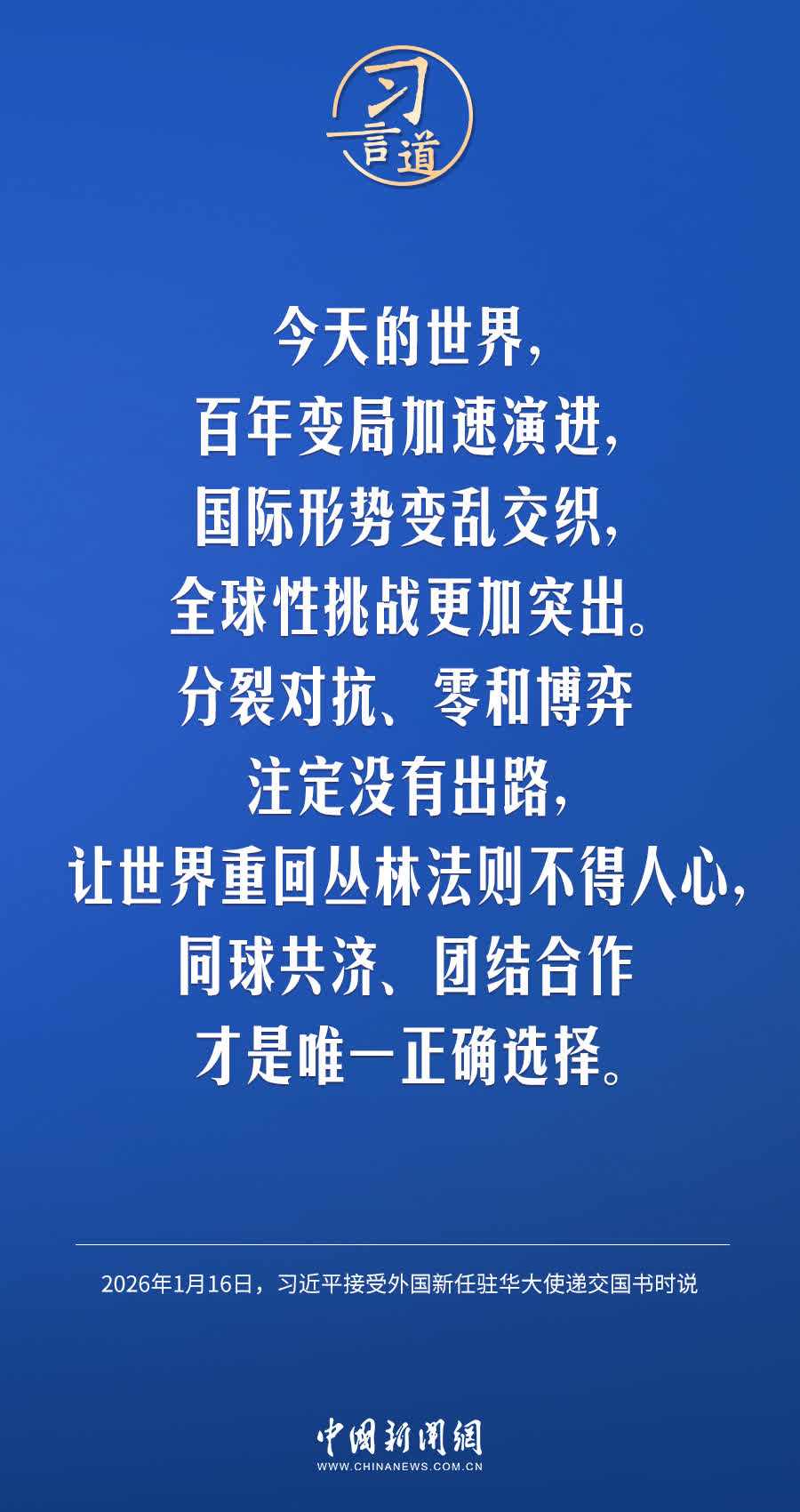 1月16日,国家主席习近平在北京人民大会堂接受18位驻华大使递交国书。仪式结束后,习近平在北京厅对使节们发表讲话。习近平指出——