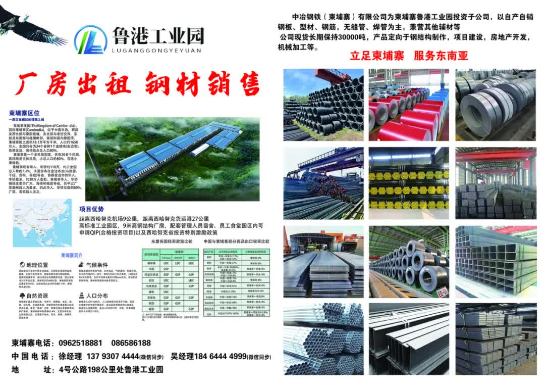 除了核心的钢材销售,中冶钢铁也提供标准厂房的出租服务(租金低至2美元/平方米/月),为希望在本地设厂或建立仓储的客户提供了又一重便利。公司背靠的鲁港工业园,更能为投资企业提供从公司注册、税务会计、法律、报关清关到建设手续的一站式落地服务,构建了一个完整的产业生态圈。