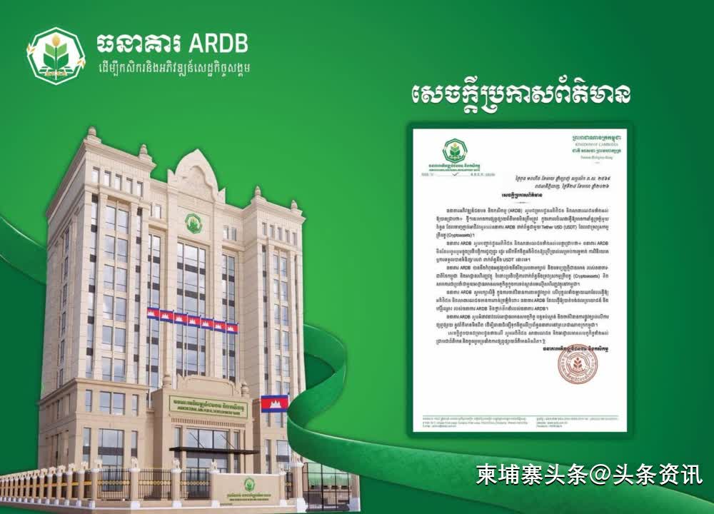 【柬埔寨头条综合报道】据柬媒消息,柬埔寨农村与农业发展银行(ARDB)近日发布官方公告,明确澄清该行与泰达币(USDT)等加密资产(Cryptoassets)无任何关联,并强调其所有业务运营始终严格遵守法律程序。