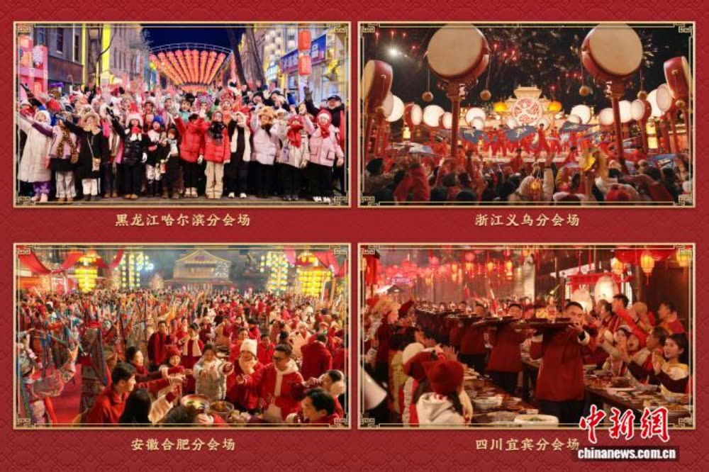 四地分会场各具风韵,从冰天雪地到长江之滨,从科创沃土到商贸新城,在新大众文艺的创新创造里展现各地年景。哈尔滨分会场融合表演唱、交响乐、芭蕾舞等表演形式,以故事化表达串联起城市地标,带观众沉浸式感受“东北老铁”的热情豪爽,传递“冰雪暖世界”的独特魅力。义乌分会场在全球数贸中心设立主舞台,表演融入拨浪鼓、婺剧、迎龙灯等地方元素;在热情四溢的歌舞中,中外文化相汇交融,四海畅联、八方通达的气象扑面而来。合肥分会场的水墨舞蹈、黄梅戏等接连登场,映照出徽风皖韵的风情;在主舞台骆岗公园上空,低空飞行器列阵翻飞,碰撞出科技与人文的璀璨火花。宜宾分会场以“万里长江第一城”的浩荡江景为幕,民俗活动“请春酒”贯穿全场,三江六岸欢歌笑语,家人围坐、燃面飘香、喜乐满堂。(完)