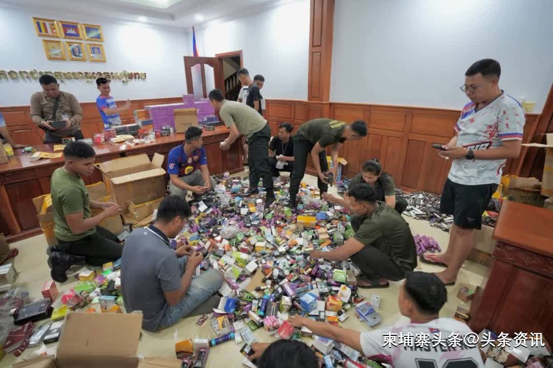 【柬埔寨头条综合报道】据本地媒体报道,2026年2月28日下午4时30分,暹粒省宪兵部与当地执法人员合作,捣毁了一个非法销售电子烟和化学物质(用于吸食)的窝点。
