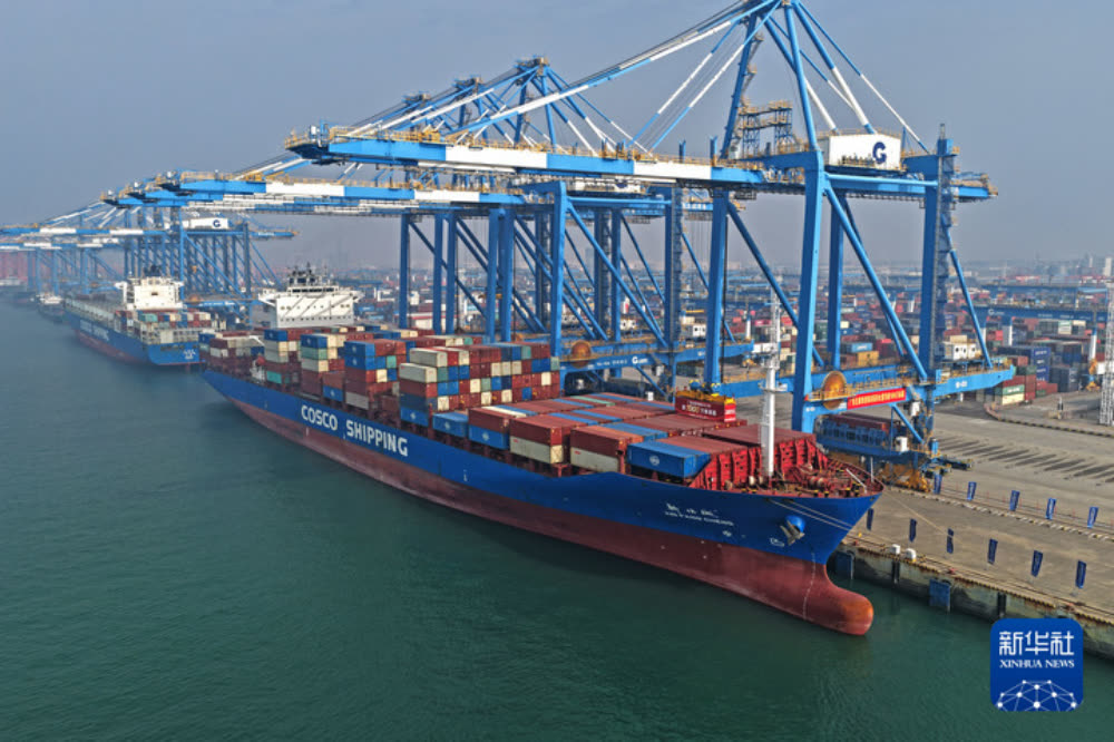 箱吊装。广西汇聚西部大通道物流链,以北部湾港为枢纽,新通道铁海联运班列陆向连接国内75个城市的163个站点,海向通达全球127个国家和地区的581个港口。越来越多企业从新“链”中获益。 新华社记者 周华 摄