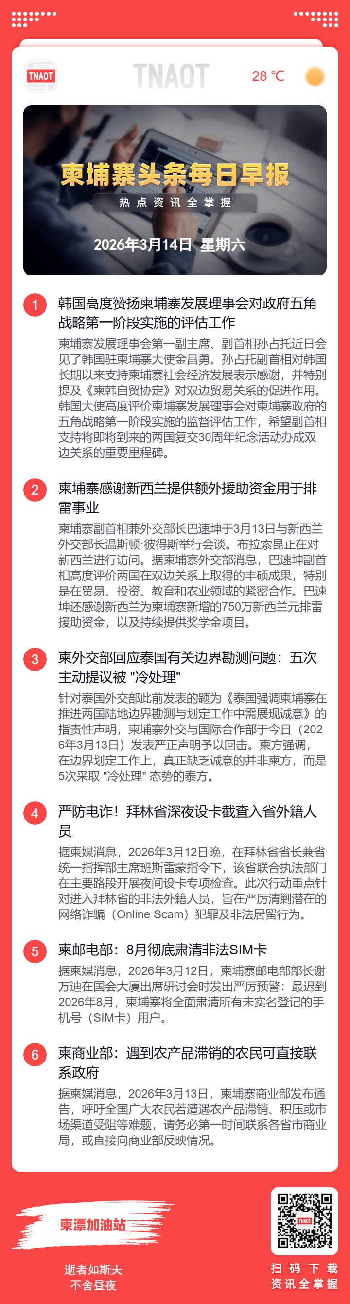 3月14日柬埔寨头条早报|韩国高度赞扬柬埔寨发展理事会对政府五角战略第一阶段实施的评估工作