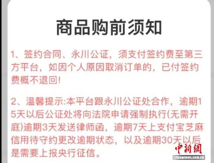 金玉满堂在《商品购前须知》中提示与公证处合作。