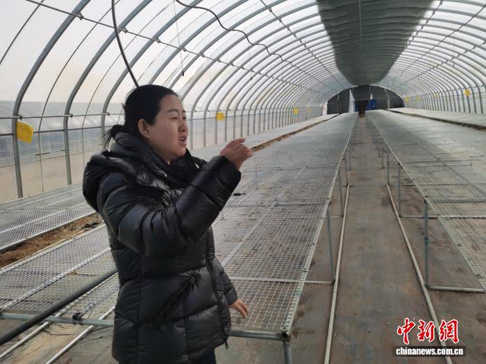 3月17日,高玥荣在大棚里为记者讲述种植冷凉蔬菜的故事。 中新网记者 李爱平 摄