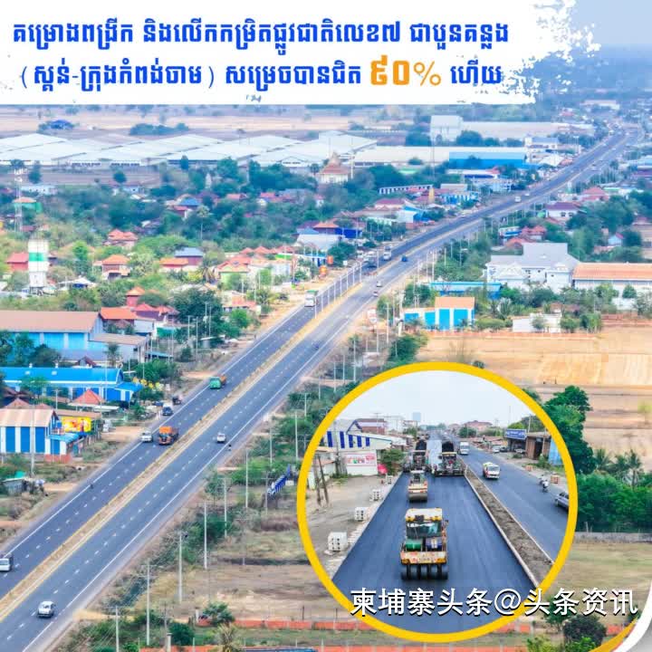 【柬埔寨头条综合报道】据柬媒消息,柬埔寨7号公路(斯昆至磅湛段)的双向四车道升级改造项目正进入全面冲刺阶段。截至2026年3月初,该全长45.504公里的扩建工程整体进度已达89.88%。