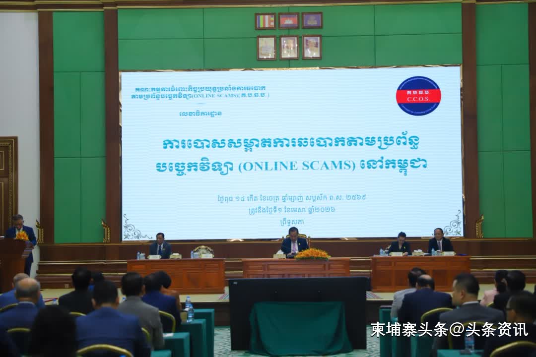 【柬埔寨头条综合报道】据柬媒消息,2026年4月1日上午,柬埔寨参议院在“团结大厦”举行“清剿网络诈骗”专题会议。国务部长兼国家打击网络诈骗委员会常务副主席蔡西那烈在会上通报,自2025年7月至2026年3月的9个月内,全国执法部门共破获超过250起网络诈骗案,并将其中80起案件移交法院审理,涉及约750名嫌疑人。