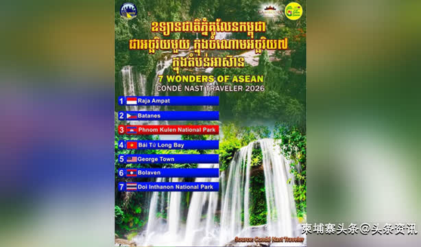 入选"东盟七大自然奇观"榜单的其他地点包括:印度尼西亚的四王群岛(Raja Ampat)、菲律宾的巴坦群岛(Batanes)、越南的拜子龙湾(Bái Tử Long Bay)、马来西亚的乔治市(George Town)、老挝的布拉万高原(Bolaven)以及泰国的因他农山国家公园(Doi Inthanon National Park)。(编译:Thomas)