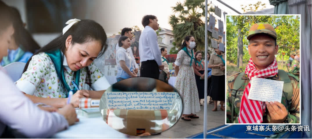【柬埔寨头条综合报道】据柬媒消息,近日,一群柬埔寨青年发起了一项旨在支持边防官兵的拥军活动,通过收集水布并书写祝福语,向一线守军表达敬意。柬埔寨首相洪玛奈亲王夫人碧占莫妮博士不仅积极参与其中,更亲笔为官兵写下感人至深的寄语。