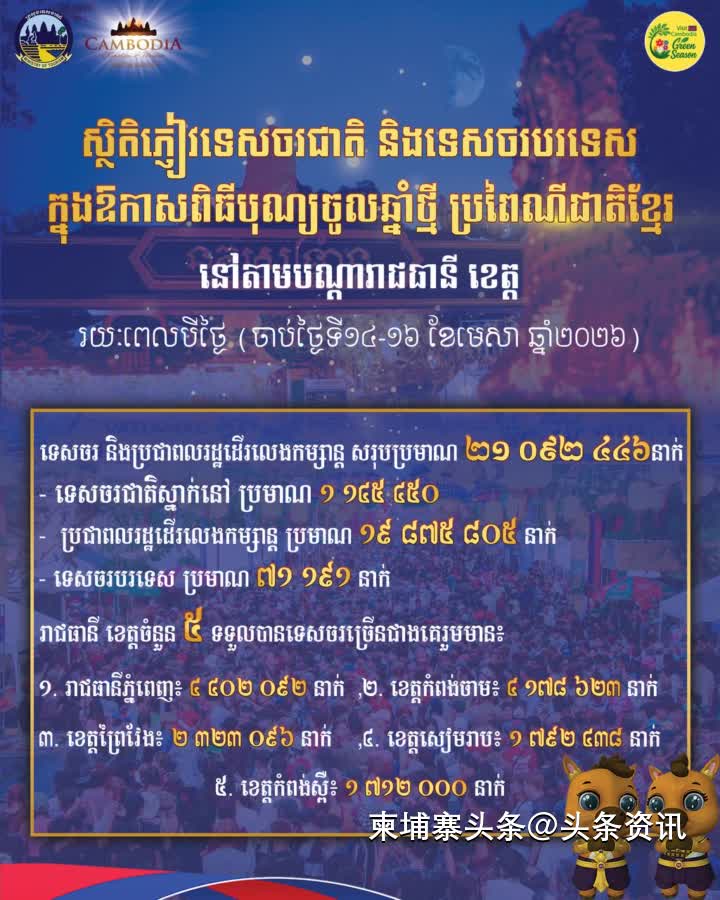 柬新年3天,全国各旅游景点共接待2100万游客人次!