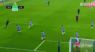 第3分钟,摩西下底传中,布莱顿后防解围不慎,阿扎尔禁区中路得球,摆脱后劲射破门!0-1,切尔西闪电进球!
