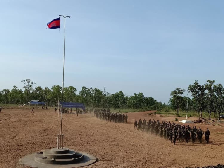 第四旅驻军指挥官包恒中将参加位于暹粒省在瓦林县第四旅驻军训练学校举行的新兵开训典礼。